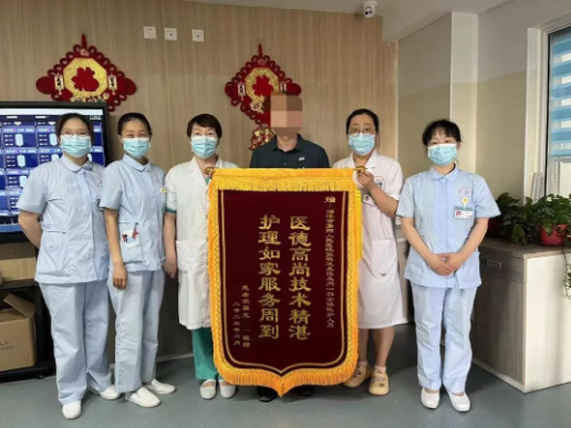 一面锦旗,凝聚着浓浓的医患情意,它不仅承载着患者对医院的信任和感激,更是对医护人员辛勤付出的肯定,也是对患者倾情照顾的最好证明。内科全体医护人员将以患者健康为己任,不断提高诊疗技术,时刻以“医德高尚,技术精湛”警醒自己,更好的为患者服务。