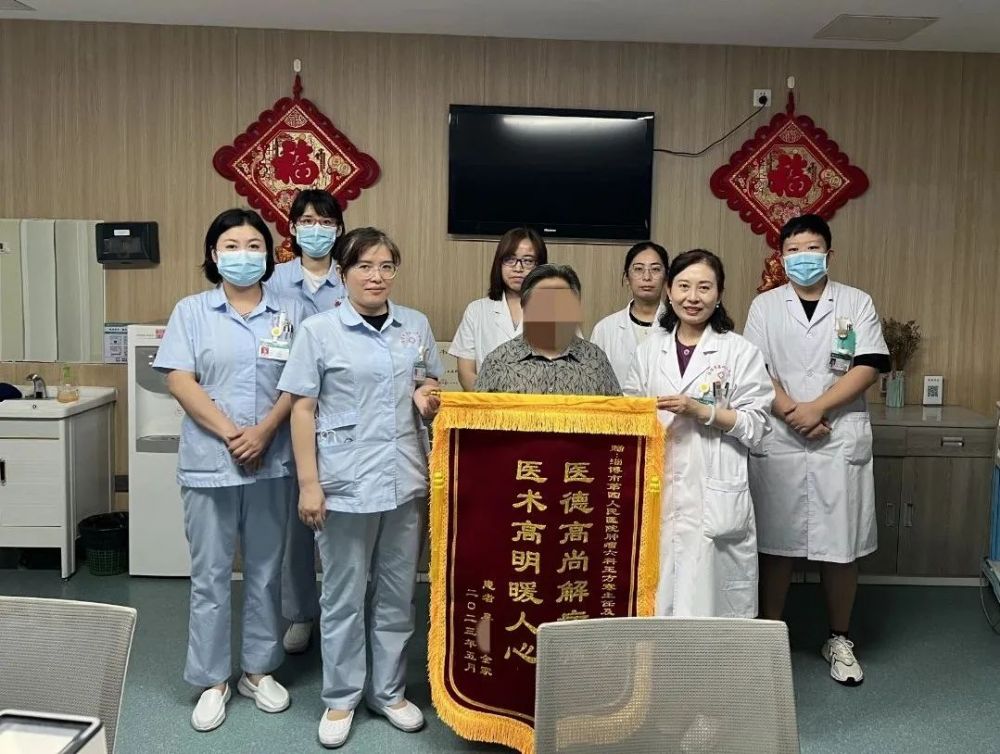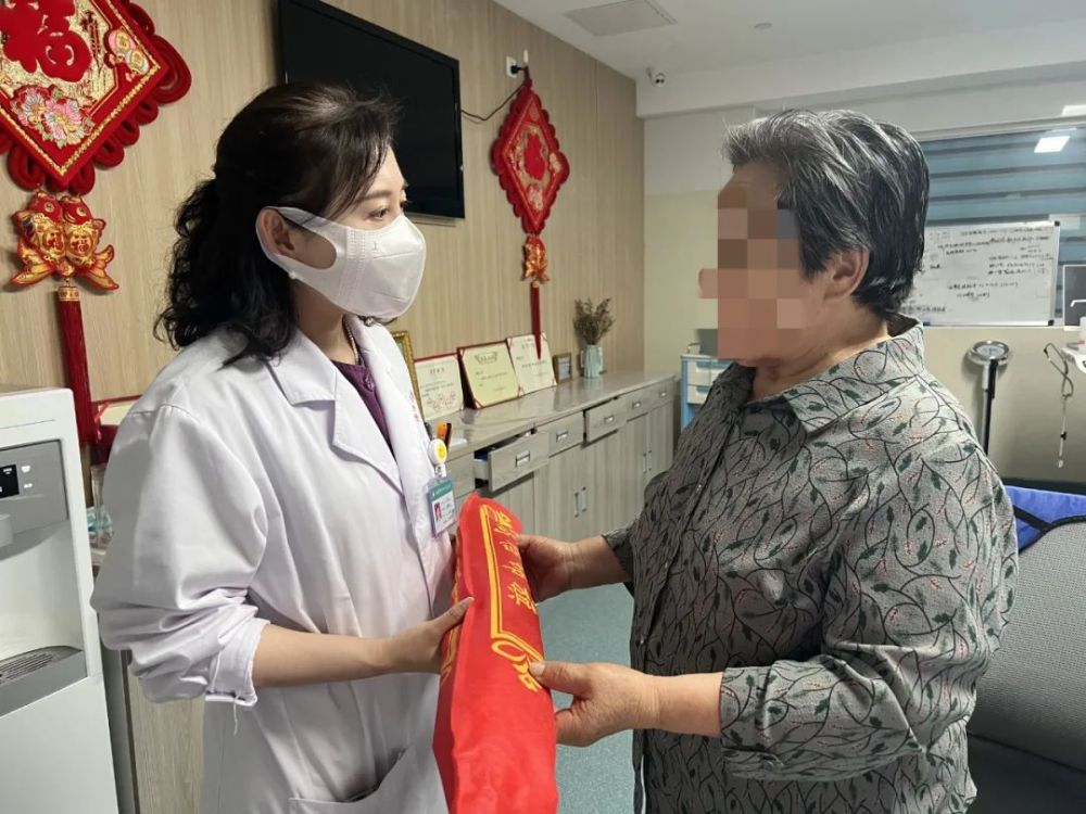 千言万语汇成一面鲜艳的锦旗,明黄色的穗子在温馨的气氛中来回飘荡。王方寒十分关心吴大爷的身体状况,亲切地和吴大娘聊着家常,并叮嘱吴大娘平时要注意他日常饮食的营养搭配,并且一定要按时复查身体等等。