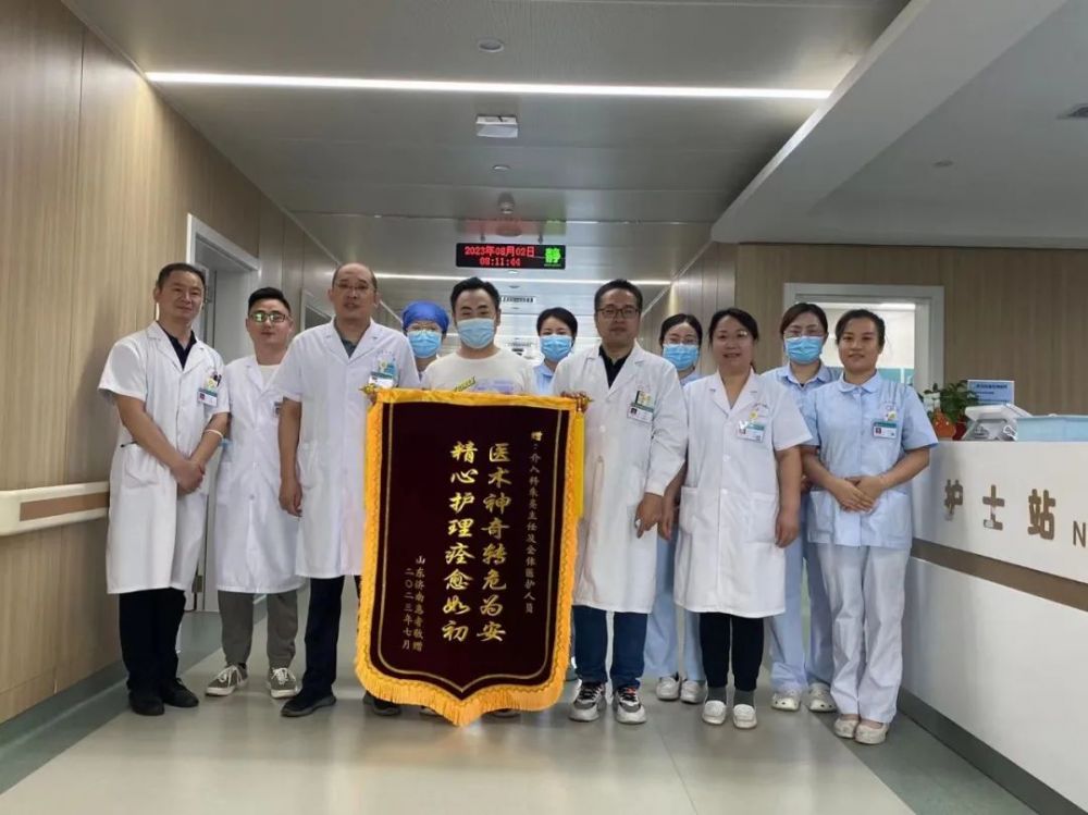 近日,一位从济南专程赶来的小伙带着灿烂的笑容,捧着一面鲜红的锦旗来到淄博市第四人民医院介入科,情真意切地握着介入科副主任朱亮的手说:“感谢医生,让我母亲转危为安,重获新生,今天我特意来感谢你们!”