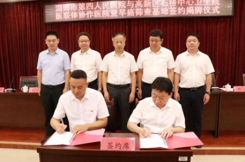 2023年8月9日,淄博市第四人民医院与高新区石桥中心卫生院共建医联体协作医院签约仪式在高新区石桥中心卫生院举行。