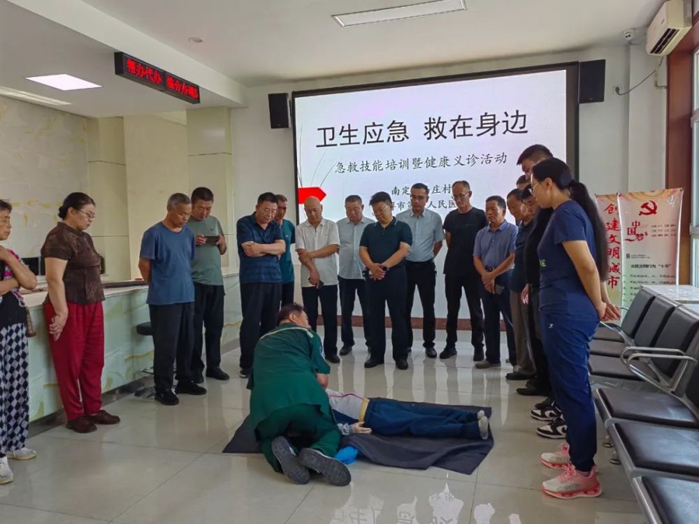 为普及卫生应急急救知识,做好应急急救知识宣传教育工作,有效提升社区居民互救及自救能力,8月16日上午,淄博市第四人民医院组织由急诊科、内科、中医科、肿瘤科、口腔科等科室医务人员组成的医护专家团,走进经开区南定镇马庄村党群服务中心,开展急救技能培训暨健康义诊服务活动。
