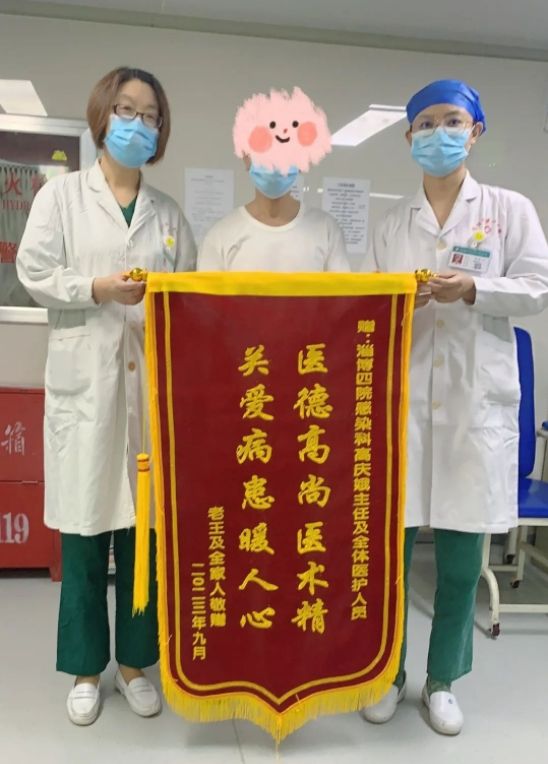“高主任,谢谢您,是您给了我新生,感谢您,感谢感染四科所有医护人员,对我认真、仔细、负责的治疗,我检查确诊肝癌以后,科室马上组织多学科会诊,都是全院知名专家给我看病、治疗,我现在经过治疗好转出院,是咱们医院给了我第二次生命”老王激动的握住高主任的手,泣不成声,高庆娥主任轻轻安慰老王:“老王,感谢您对我们的信任和鼓励,是您对自己负责,选择了我们医院、相信我们科室,相信我们医务人员,我们会用最精湛的技术手段、最先进的治疗方法,给您制定最精准的治疗方案,也相信在以后的治疗道路上,我们共同努力,能够一起打败病魔”。