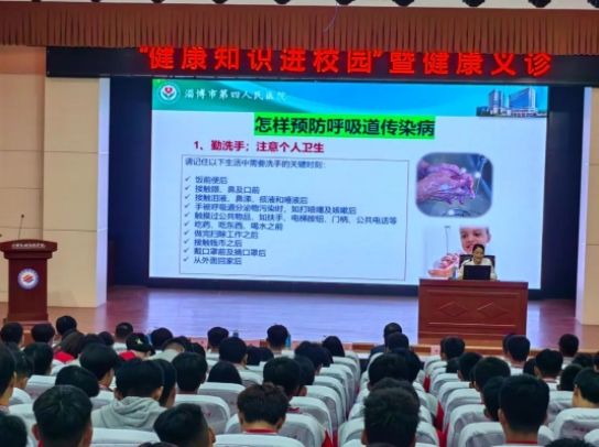 为贯彻落实"四送四进四提升"活动要求,高质量推进健康淄博建设,提升高校健康知识的科普宣传力度,引导大学生树立"大健康"理念,打造大学生健康科普品牌,10月11日下午,淄博市第四人民医院医护专家团走进山东水利技师学院开展“健康知识进校园”"健康第一课"暨义诊活动,开展急救知识、健康保健、心理健康、传染病防治等公益科普宣讲。