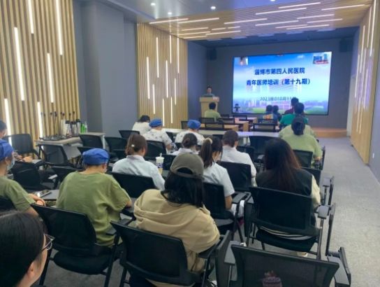 10月11日,淄博市第四人民医院第十八期《名医大讲堂》、第五期《学员大讲堂》如期开讲,40余名青年医师参加讲座。