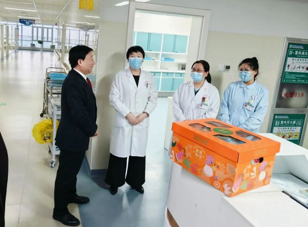 即辞福兔别旧岁,喜迎金龙贺新年。在阖家团圆时总有一群白衣天使在默默守护着生命,坚守在工作岗位,践行着初心使命。农历除夕夜、大年初一晨,淄博市第四人民医院党委书记郭平、党委副书记、院长王忠德、副院长王磊深入临床、门诊医技科室、行政后勤保障岗位走访慰问,向坚守一线的工作人员和住院患者送去新春祝福和亲切关怀。