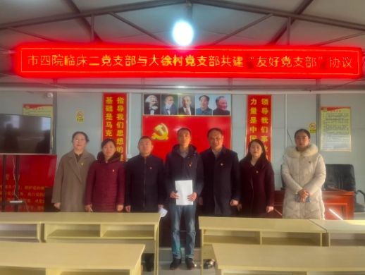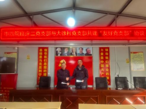 2024年3月7日上午,淄博市第四人民医院临床第二党支部与傅家镇大徐村党支部共建“友好党支部”签约仪式在大徐村村委顺利举行。傅家镇大徐村党支部书记徐金波、淄博市第四人民医院纪委书记鲍应麟、党委委员、院长助理傅伟伟、临床第二党支部书记李刚以及共建双方支部委员、党员参加了签约仪式。