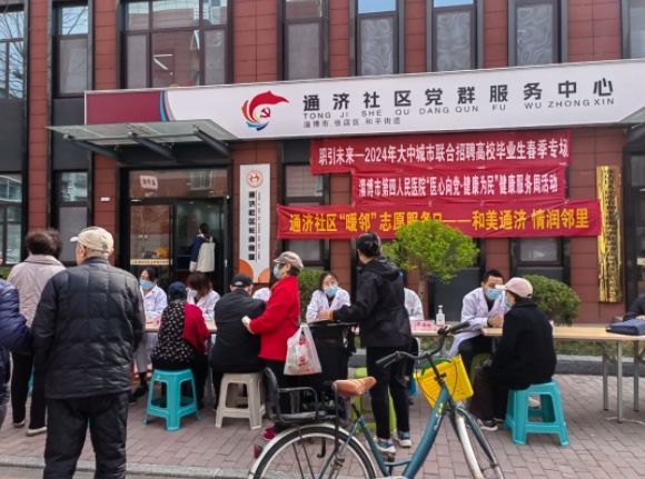 为全面提升居民健康素养水平,养成文明健康、绿色环保生活方式,方便群众就医,3月22日上午,医院精心组织各临床科室医护专家团队,携带义诊箱、电脑、扫码墩、无线网卡等移动办公设备,走进淄博市张店区和平街道通济社区,开展 “健康教育惠万家”、“‘医’心向党·健康为民”大型健康义诊宣传活动,为居民进行健康义诊和普及健康知识。