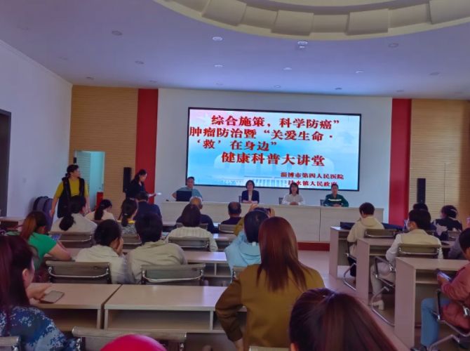 为提升公众科学抗癌的理念及应急急救能力,5月15日下午,淄博市第四人民医院对淄博经开区沣水镇计生办、妇联及乡医等工作人员,开展以“综合施策·科学防癌”“关爱生命·救在身边”为主题的健康科普讲座及急救能力再提升专题培训。