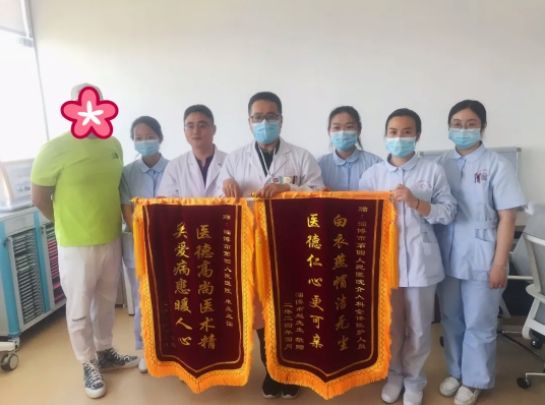 初夏的六月,淄博市第四人民医院介入科病区里倍感温暖,患者杨女士的家属将两面锦旗送到了医护人员手中,“医德高尚医术精,关爱病患暖人心”“白衣燕帽洁无尘,医德人心更可亲”,以此表达对介入科朱亮团队医务人员的赞誉和感激。
