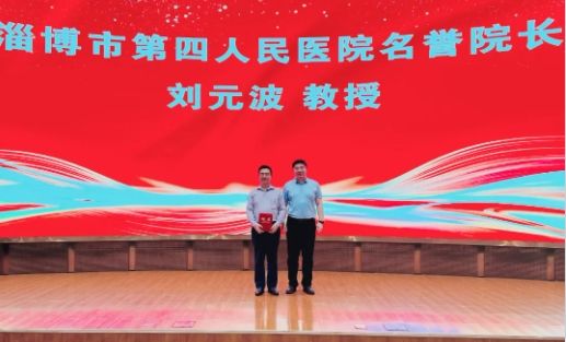 宋占帅为刘元波教授颁发淄博市第四人民医院“名誉院长”聘任证书。