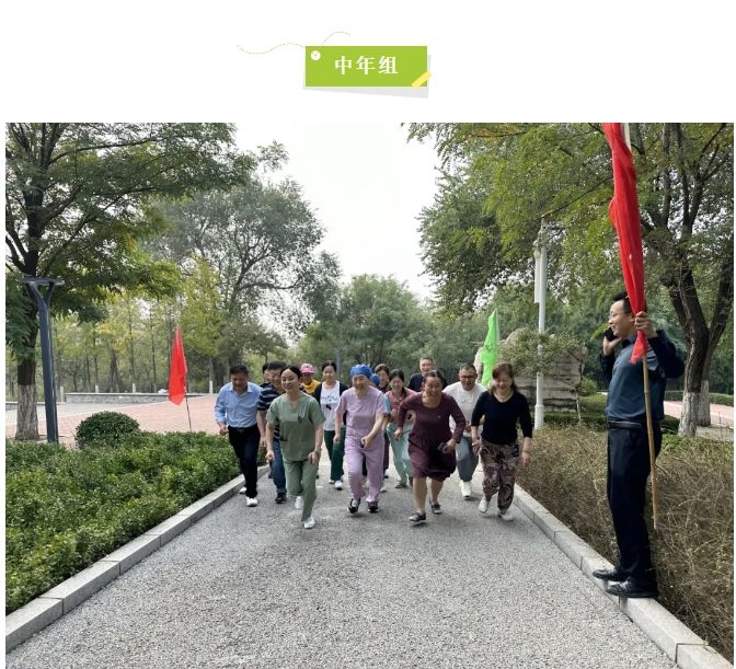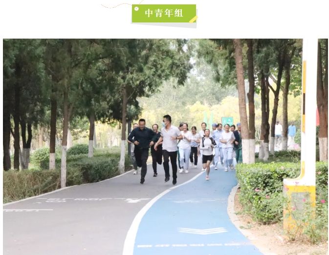 这是运动会的第二个比赛日,活动在青年公园举行,分设男子中年组、中青年组、青年组,女子中年组、中青年组、青年组。哨声响起,参赛选手按照既定路线奔跑着……