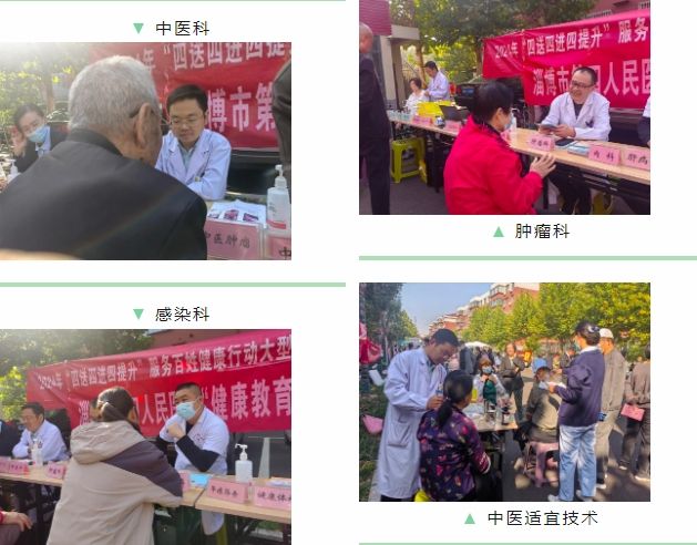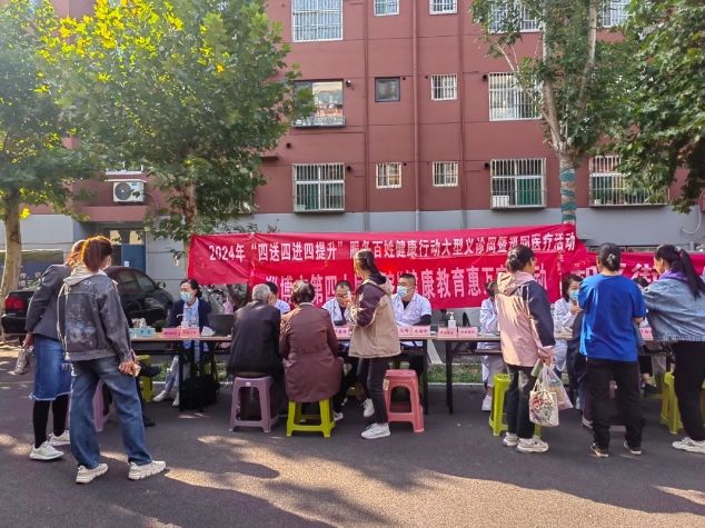 为深入贯彻实施国家、省、市卫健委《关于开展2024年“服务百姓健康行动”全国大型义诊活动周的通知》文件精神,淄博市第四人民医院有重点、有针对性的开展多种形式义诊活动,为群众在家门口看病就医创造便利条件,不断满足人民群众多层次、多样化的健康需求。10月12日上午,由临床各科室主任、护士长组成的医护专家团队走进张店区和平街道佳和社区“2024乡村好时节 乐动生活系列”活动现场,开展“四送四进四提升”服务百姓健康义诊暨巡回医疗活动。