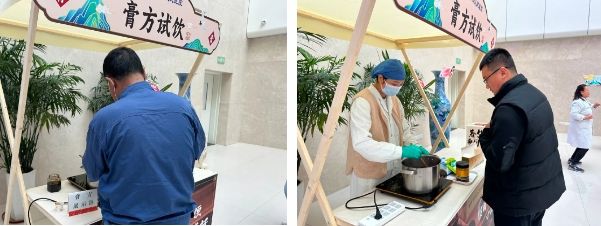 义诊现场还开展膏方试吃、养生茶饮、中医适宜技术推广、中药材展示等项目,专家们热情地与群众进行膏方知识互动,对群众提出的健康问题耐心解答,积极宣传中医防治疾病、养生、保健科普知识,受到现场群众的热烈欢迎。