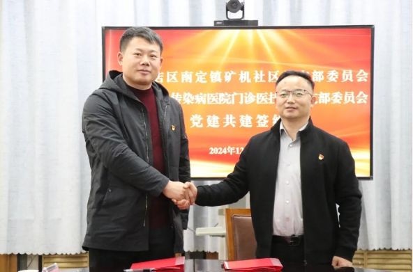 艾明涛书记与医院门诊医技第一党支部书记李祥峰同志签订党建共建协议。