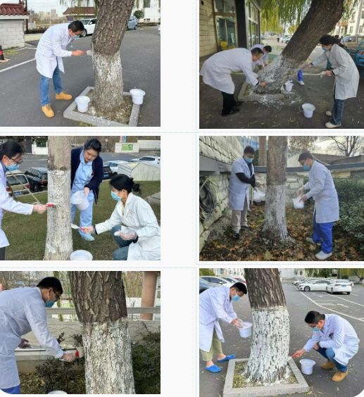 随着寒冬的到来,气温逐渐下降,为保护院内树木免受严寒侵袭,美化医院环境,淄博市第四人民医院总务科联合团委开展“为树涂白 温暖过冬”志愿服务活动。