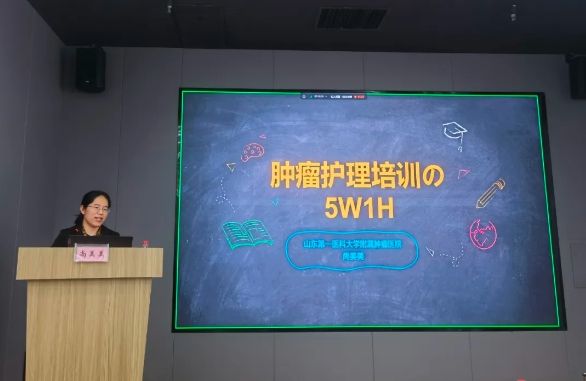山东省肿瘤医院护理部副主任尚美美教授作了《肿瘤护理教学培训之5W1H》的专题讲座。尚美美从护理教学培训的意义、角色、内容、时间、地点、方法等方面作了详细介绍,并结合实际案例进行了专业分析,为下一步优化医院护理培训管理体系拓宽了工作思路。