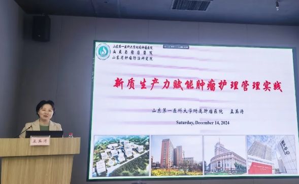 山东省肿瘤医院护理部主任孟英涛教授分享了《新质生产力赋能肿瘤护理管理实践》的专题讲座。孟英涛指出,新质生产力是指以科技创新为核心,以信息化、智能化为手段,高科技、高效能、高质量的先进生产力。在肿瘤护理管理实践中,提出了STAR创新管理模式,以服务、技术、管理、学科整合多方面为一体,为患者提供更加优质、高效、精准、专业的护理服务。