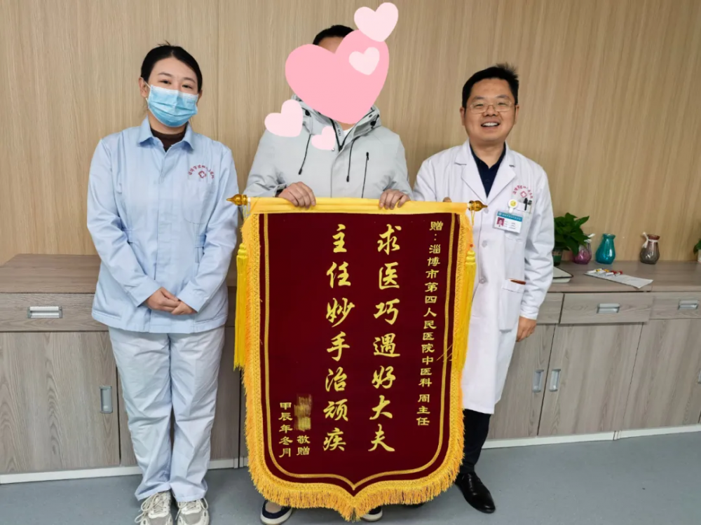 在追求健康与和谐的道路上,中医以其独特的理论体系与治疗方法,不断为患者带来希望与惊喜。近日,淄博市第四人民医院中医科传来喜讯,一位长期饱受顽固性咽炎困扰的患者,在中医科医护人员的精心治疗下,病情显著好转,重获咽喉健康,特此送来锦旗表达深深感激之情。