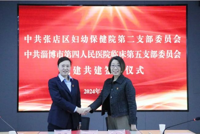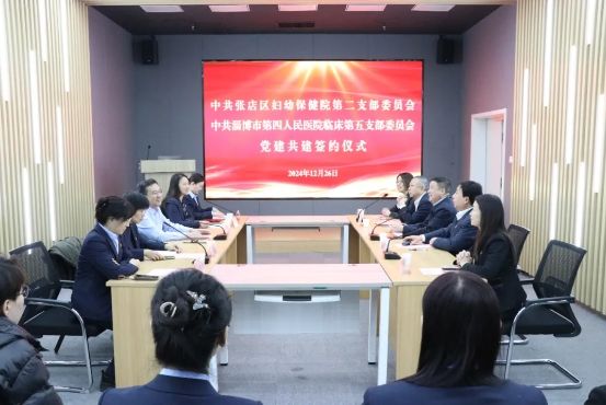 为深入贯彻党的二十大和二十届二中、三中全会精神,充分发挥党建引领作用,共同探索提高医疗服务质量和效率的新模式,12月26日上午,淄博市第四人民医院临床第五党支部与张店区妇幼保健院第二党支部举行党建共建签约仪式。