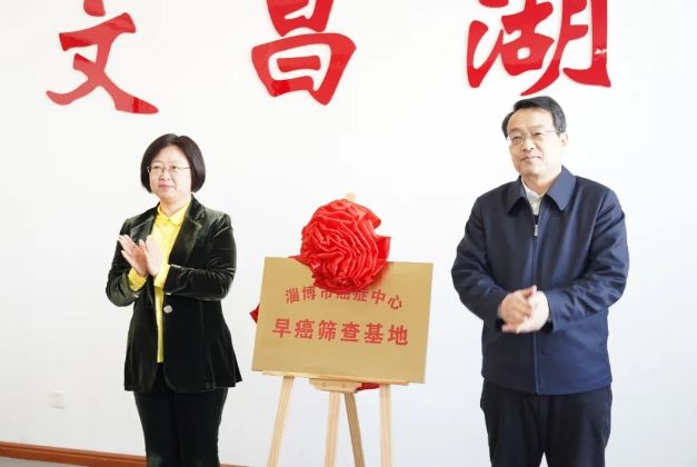 郑元水、李晓红共同为“淄博市癌症中心早癌筛查基地”揭牌。