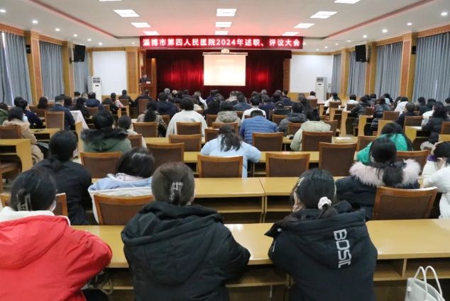 为全面回顾总结2024年度医院工作成果,进一步统一思想,凝聚共识,谱写2025年医院高质量发展新篇章。1月14日至15日,淄博市第四人民医院召开2024年度述职评议会。医院领导班子、中层干部、医疗组长,硕士研究生和在职硕士学位人员140余人参加会议。会议由党委副书记张宏伟主持。