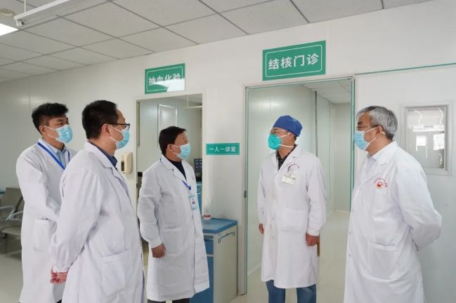 在结核病门诊,王忠德认真倾听门诊部主任和护士长关于结核病门诊开诊的汇报,查看了就诊环境、诊疗流程和患者就诊情况。与门诊医生进行深入交流,了解工作中存在的困难,及时协调相关职能科室尽快解决各环节存在的问题。