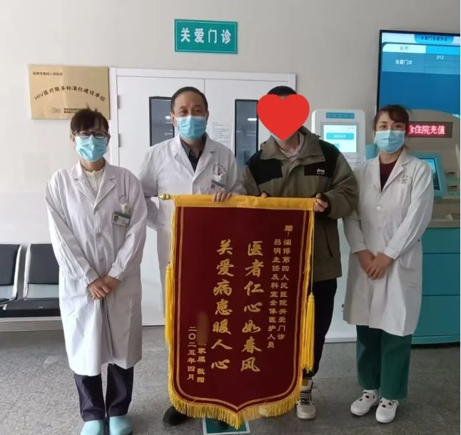 清晨,淄博市传染病医院关爱门诊大厅里上演了温暖一幕:患者张先生(化名)将一面印有“医者仁心如春风 关爱病患暖人心”的锦旗郑重交到感染三科副主任吕明及医护团队手中。红底金字的锦旗背后,是一段跨越偏见、重燃希望的医患故事。