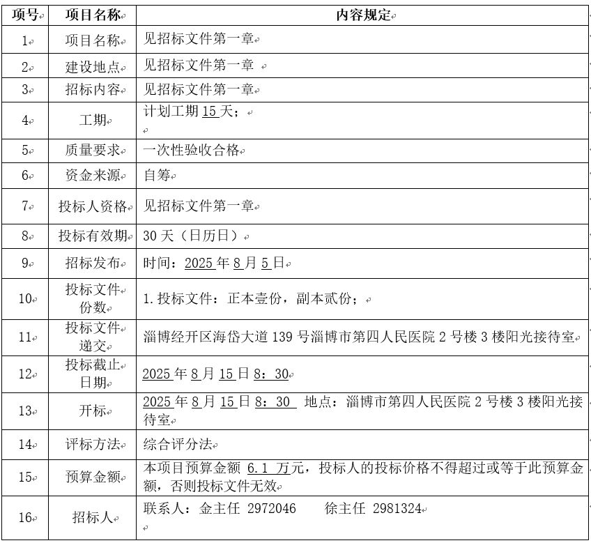 招标人名称:淄博市第四人民医院