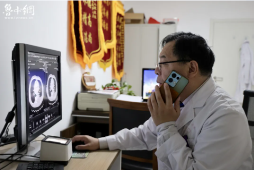 “王主任,这个患者是双肺都有结节吧,有一个累及胸膜了,需要赶紧处理,胸膜转移就会引起胸水,后期就不好弄了。”在放射科,科主任、主任医师宓兵聚精会神地看着患者的增强CT影像,并与肿瘤五科主任、主任医师王素玲进行电话会诊。