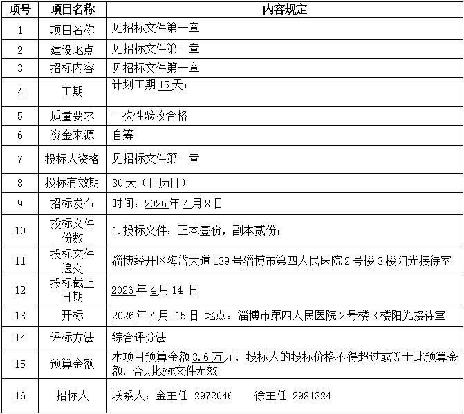 3.3招标文件获取方式:见淄博市第四人民医院官方网站公告。